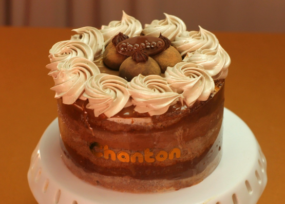 Bolo de chocolate, creme de leite condensado, brigadeiro. Foto Ilustrativa. Manter refrigerado