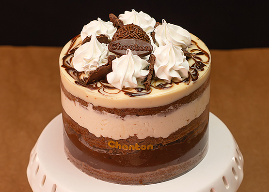 Bolo de chocolate, musse de chocolate e café, doce de leite. Foto ilustrativa. Manter refrigerado.