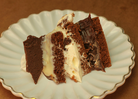 Bolo de chocolate, creme de leite condensado, brigadeiro. Foto Ilustrativa. Manter refrigerado