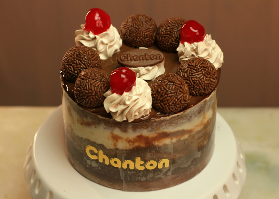 Bolo de chocolate, creme de leite condensado, brigadeiro. Foto Ilustrativa. Manter refrigerado