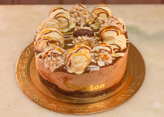 Bolo de chocolate, creme de leite condensado, brigadeiro. Foto Ilustrativa. Manter refrigerado