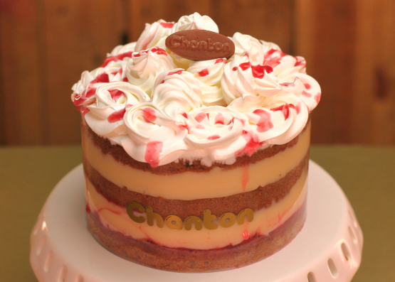 Bolo de chocolate, recheio de geleia artesanal de frutas vermelhas, recheio de creme de baunilha, cobertura de chantilly e suspiros. Foto ilustrativa. Manter refrigerado.