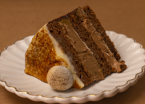 Bolo de chocolate, musse de chocolate e café, doce de leite. Foto ilustrativa. Manter refrigerado.