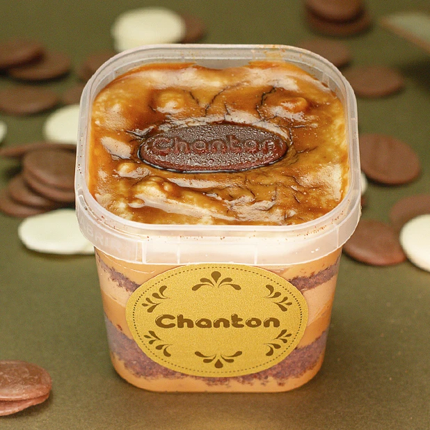 Bolo de chocolate, musse de chocolate e café, doce de leite. Foto ilustrativa. Manter refrigerado. Pote com 210ml