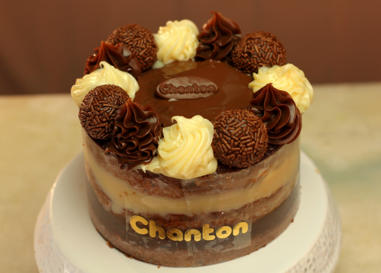 Bolo de chocolate, creme de leite condensado, brigadeiro. Foto Ilustrativa. Manter refrigerado
