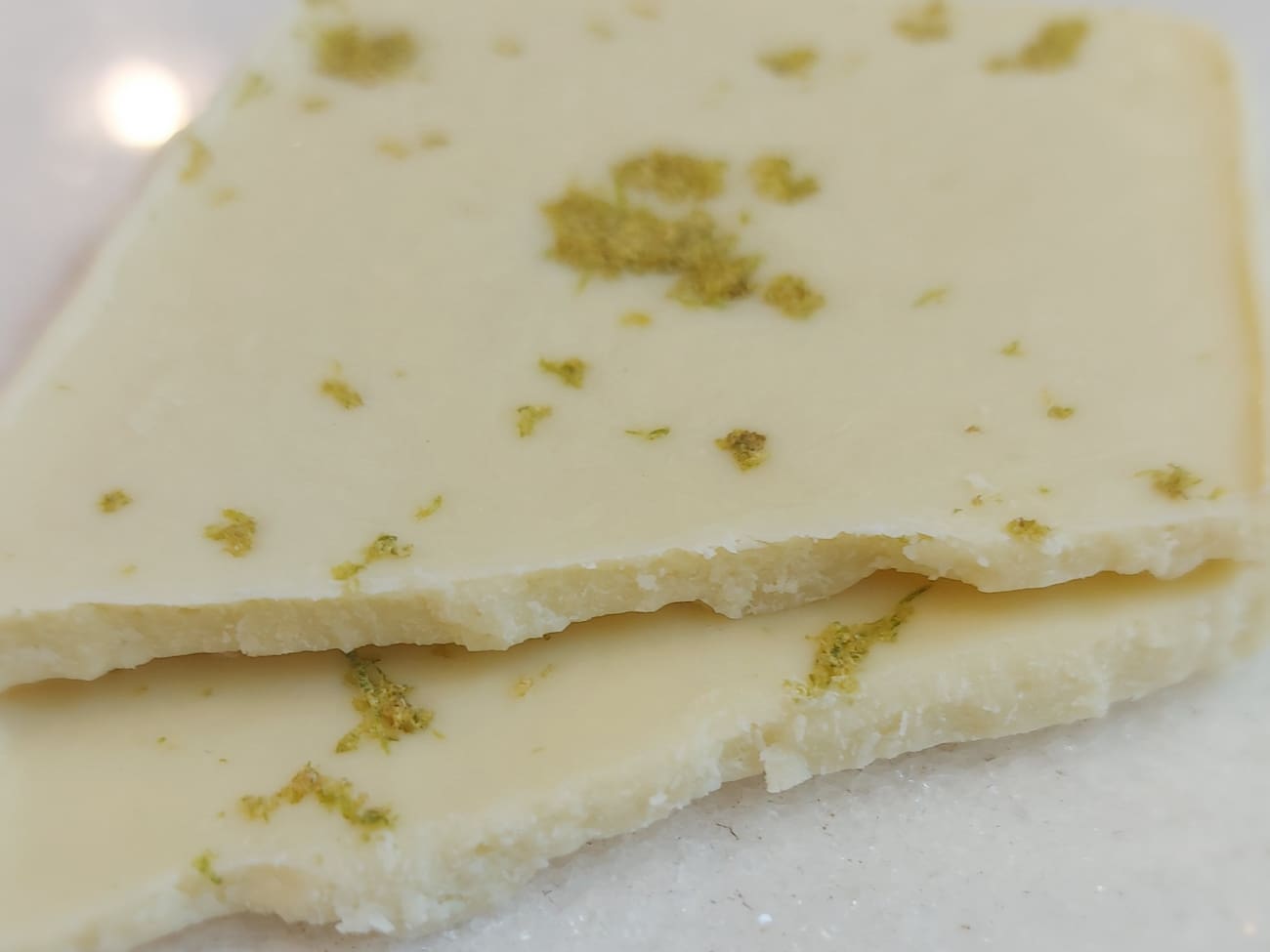 Barra de chocolate branco ao leite de coco com limão - 50g. Foto ilustrativa.