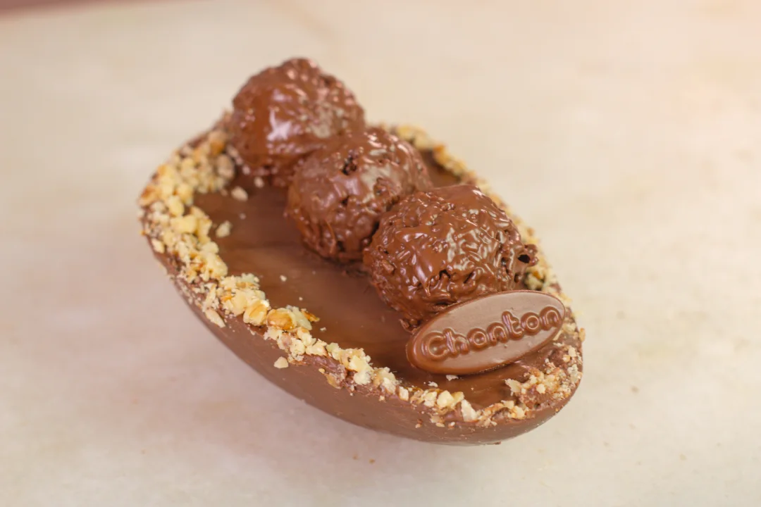 Até 3 x no cartão. Ovo de Chocolate ao leite Puro com casca recheada de Nutella e coberta com chocolate crocante. Foto ilustrativa. Manter em temperatura entre 18ºC e 24ºC.