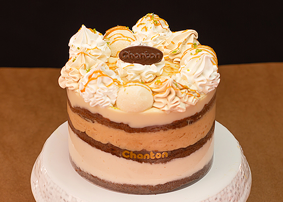 Bolo de chocolate ,creme de três leites, mousse de caramelo e cobertura de mousse de doce de leite e raspas de limão. Foto ilustrativa. Manter refrigerada.
